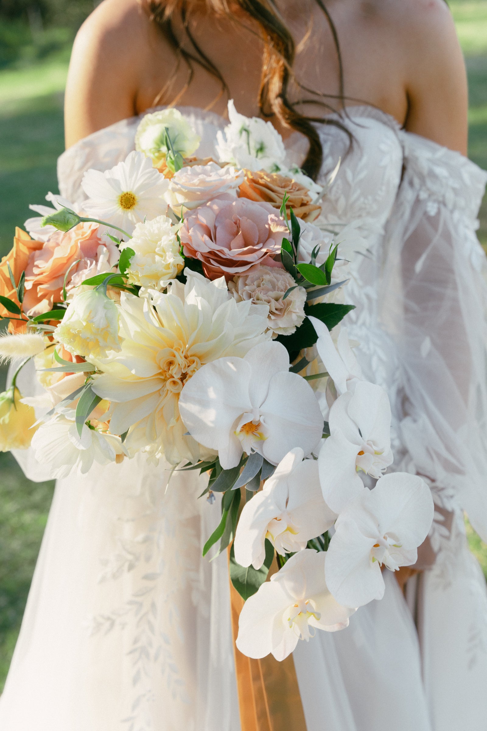Pretty pastel blooms combine beautifully to create our Hayman bouquet, featuring Roses, Mums and Daisy Chrysanthemums, locally grown Gerberas and Butterfly Delphinium, Lillies, Carnations and greenery.